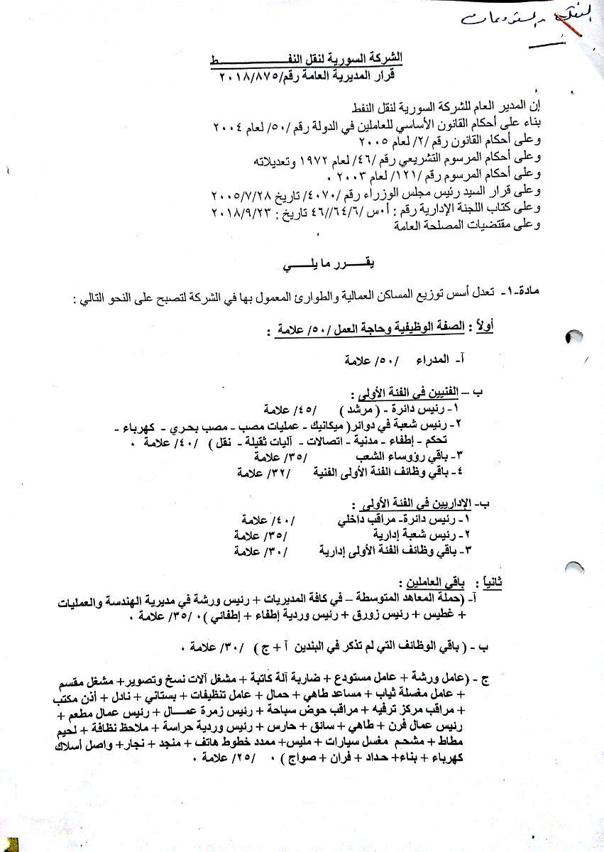 السادةعمال الشركة السورية لنقل النفط