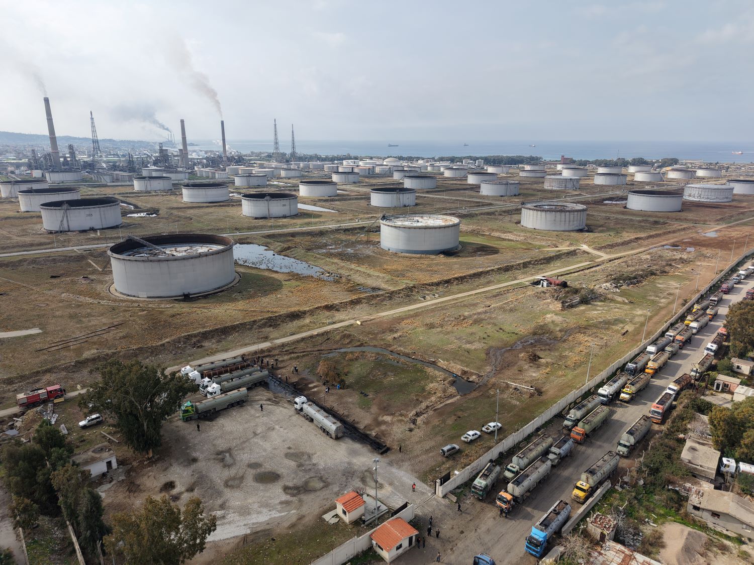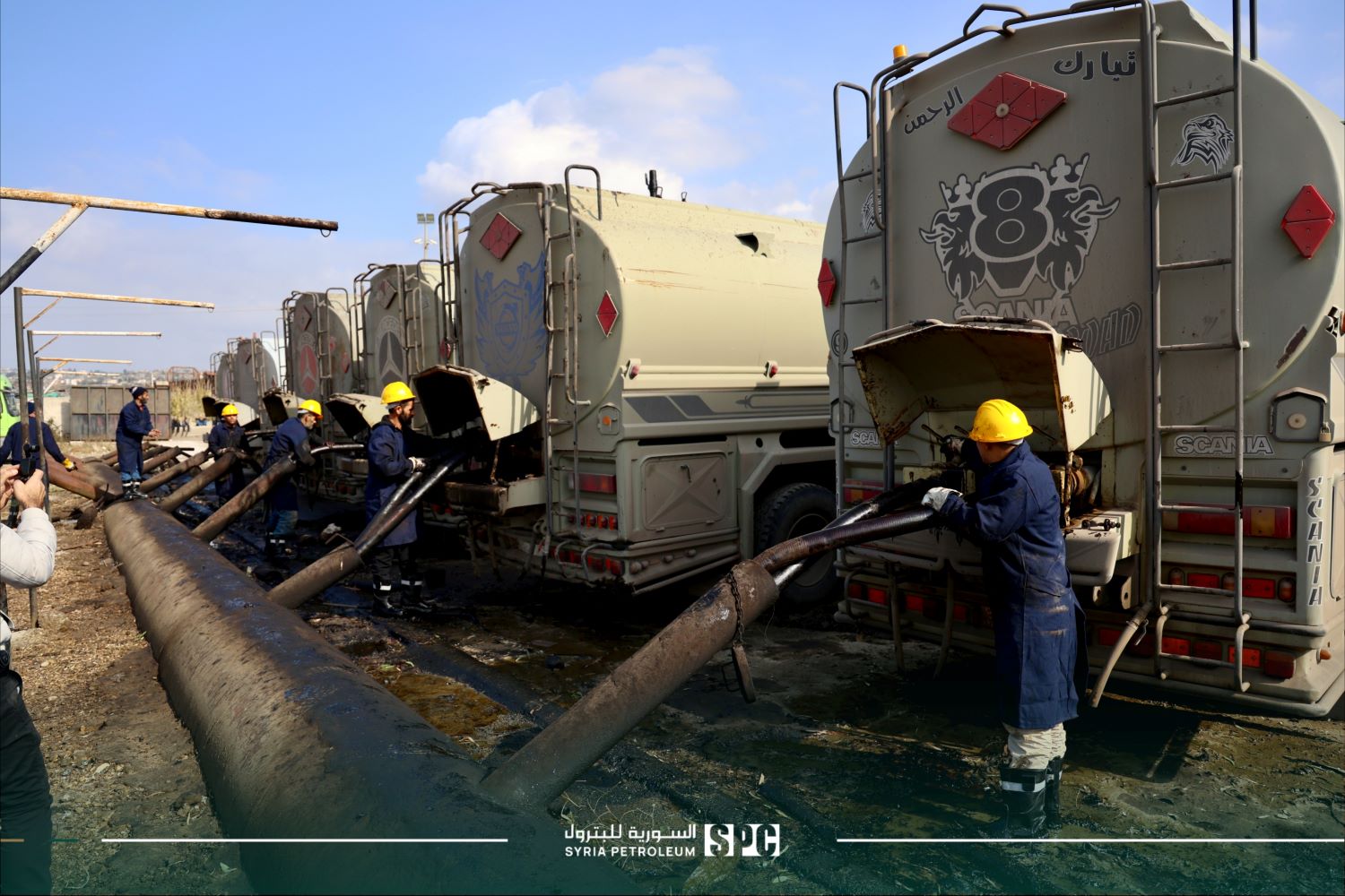 وصلت إلى محطة الشركة السورية للبترول في مدينة بانياس، اليوم، أولى شحنات النفط الخام المنقولة براً من حقلي “العمر” و”التنك” بعد تحريرهما وإعادتهما إلى الخدمة الإنتاجية.